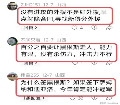 作为一名争冠球队,山西男篮本赛季找来黑根斯,还是让许多人感到不惑。通过杯赛3场比赛,黑根斯“水货外援”的本色也逐渐显现,许多山西球迷也大失所望,纷纷表示“老黑的确不行!赶紧开了吧!”;“没有进攻的外援不是好外援,早点解除合同,寻找新得分外援。”;“百分之百要让黑根斯走人,能力有限,没有杀伤力,冲击力不行”;“为什么签黑根斯?如果签下萨姆纳和迪亚洛,今年肯定能冲冠军”……